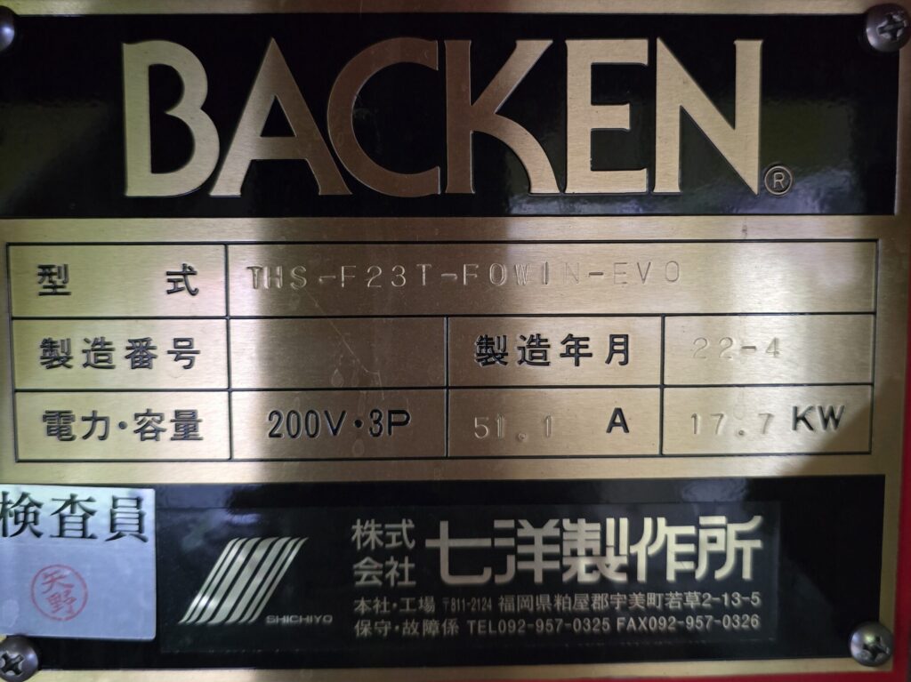 電源:3相200V17.7kw